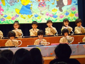 鍵盤ハーモニカ演奏「フレール・ジャック」歌「ありがとうの花」劇あそび「美女と野獣」