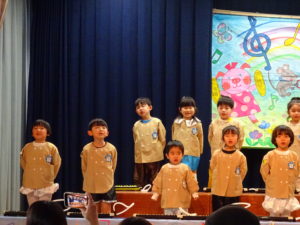 令和7年2月8日(土)は音楽発表会がありました。夜中から降り続けた雪が朝まで残り、開催も一時は心配されましたが、予定通りに行うことができました。沢山のお家の方が楽しみに観に来てくださり、子ども達からも、今日は本番!!がんばるぞ!という気持ちが伝わり最後までみんなで心をひとつにしてフィナーレを迎えることができました。3歳児ばら組のカスタネット演奏から始まり、保護者の皆様には、どの発表にも心温まるたくさんの拍手で会を盛り上げていただき、本当にありがとうございました。