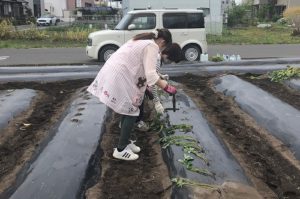 若葉第一幼稚園・尾崎幼稚園・若葉保育園・バスの運転手さんとたくさんのお芋の苗を植えてきましたよ。お友達みんなで行けなかったことは残念でしたが、秋の遠足で無事に収穫できますように心を込めて、苗植えしてきましたよ。みんな楽しみにしていてね。