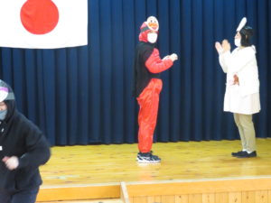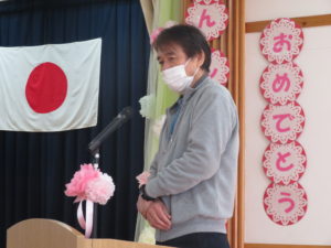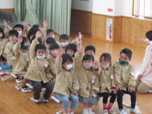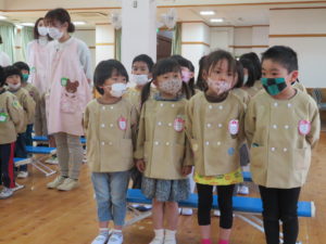 令和3年度進級式 2021.04.13 令和3年4月6日(火)ホールで令和3年度進級式を行いました。みんな一つ大きくなった喜びを感じながら、式に参加していましたよ。担任の先生の発表や保育園でのお約束をアンパンマンとバイキンマンとお話しました。小さいお友達もアンパンマンたちの登場には大喜びでしたよ。 < >