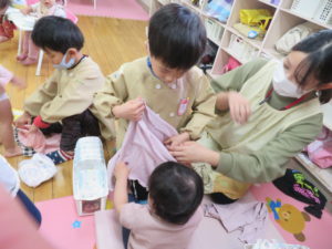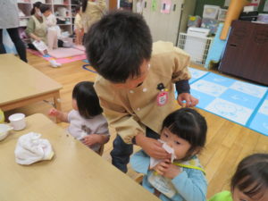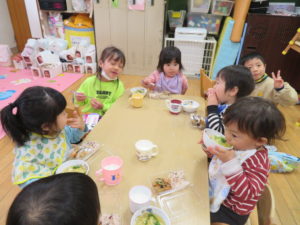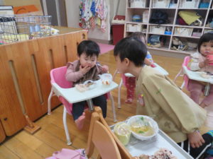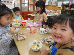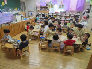 ランチデー 2021.11.16 令和3年11月12日(金)はお待ちかねのランチデーでした。七五三にちなんでこの日はお赤飯弁当でした。年長組のお友達ともも組のお友達は一緒にランチデーの時間を過ごしました。食べ終わった後は、お着替えなどのお世話もしてくれたさくら組さんでした。小さいお友達もお兄さんお姉さんと一緒でうれしそうでしたね。 < >