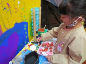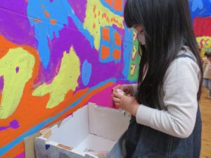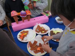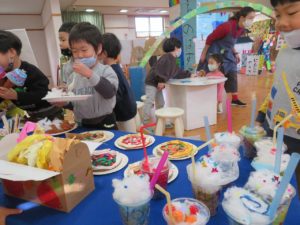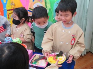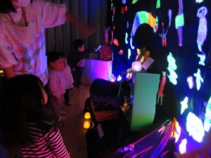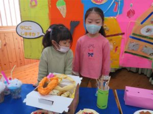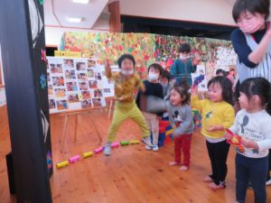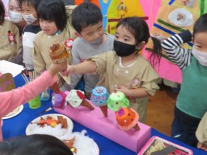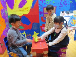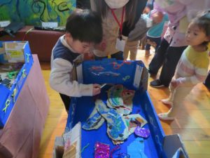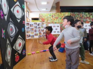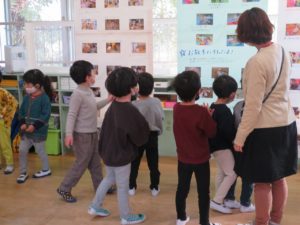 いっぱいあそんだよ 2021.11.20 わかばっこギャラリーの翌日はクラスのお友達や先生と一緒に作品を見て回りました。お家の方とは会話を楽しみながら見て回った作品展でしたが、お友だちと一緒ということもあり、それぞれのコーナーで遊びが始まり賑やかな保育園の風景が広がっていました。 < >