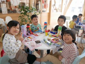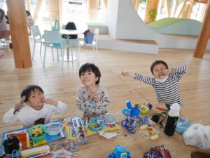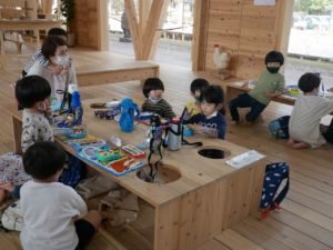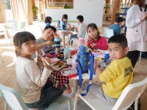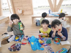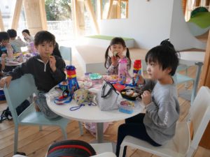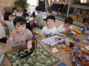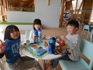 そして、待ちにまったお弁当の時間。お弁当箱のふたを開けると嬉しそうにお友達と見せ合いっこしていましたよ。保護者の皆様、愛情たっぷりの手作りのお弁当をありがとうございました。園に帰る時間が近づいていることを知らせると、「もっとあそびたーい!!」と名残惜しそうにしていましたが、施設の方にご挨拶をしてさよならしました。いっぱい遊んで、いっぱい笑って楽しかったね。