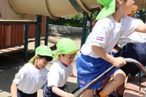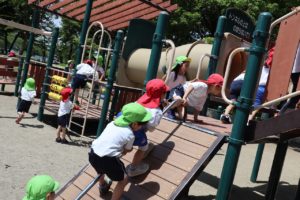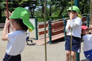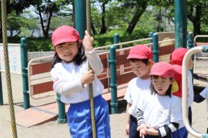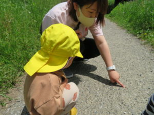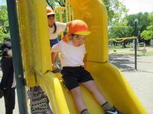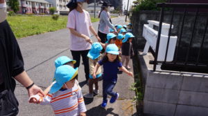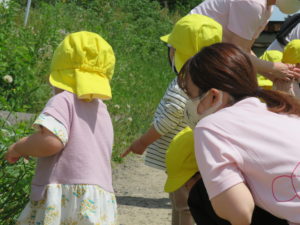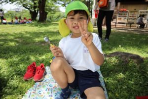 春の遠足 2022.05.31 令和4年5月10日(火)春の遠足に出かけました。お天気にも恵まれ最高の遠足日和になりました。3・4・5歳児のお友達は第二幼稚園のバスにのって、各務原市民公園にいきました。0・1・2歳児のお友達は保育園の周辺をお散歩しましたよ。春の日差しを浴びながら、元気いっぱいあそぶことができました。そして、一番のお楽しみはお弁当!!愛情いっぱいのお弁当をありがとうございました。 5歳児 4歳児 3歳児 2歳児 0・1歳児 < >