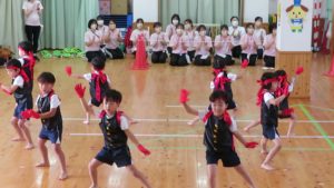 令和4年9月10日(土)、2022年度 若葉保育園の運動会を開催しました。今年度も新型コロナウイルス感染症対策のため、ばら・ゆり・さくら組の運動会は各クラスごとに行いました。例年より少し早い開催となりましたが、夏から練習を頑張り、みんなで笑顔一杯楽しく運動会を終えることができました。さくら組さんは、少し思考を変え、オープニングにラグビーでお馴染みのハカを取り入れ、先生たちと一緒に盛り上がりました。さくら組のお友達の真剣な表情がとても印象的でした。ばら組さんのバルーン・ゆり組さんのリズム遊戯、みんなの心が一つになったとても素敵な運動会でした。