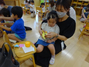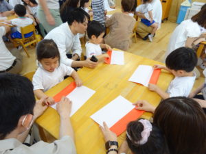 ばら・ゆり・さくら組保育参観 2023.06.22 令和5年6月17日(土)に、ばら・ゆり・さくら組の保育参観がありました。各クラス、制作や、ごっこ遊び、ゲーム遊びをして楽しみました。なかには、沢山の保護者の方を目の前にして、緊張している姿も見られましたがみんな嬉しそうにしていましたね。保護者の方とふれあいながら遊ぶ時間も楽しいひと時となりました。お休みの中、参観へのご出席、ありがとうございました。 ばら組 ゆり組 さくら組 < >