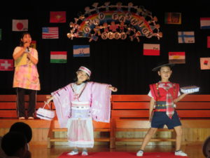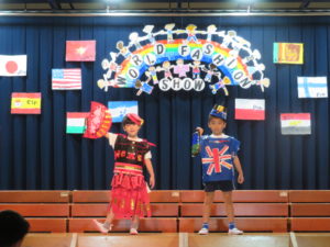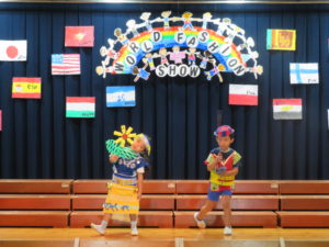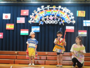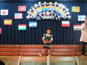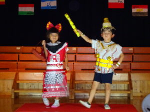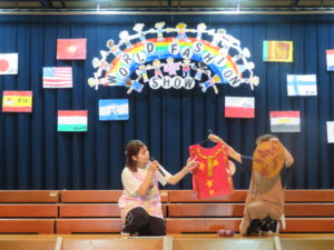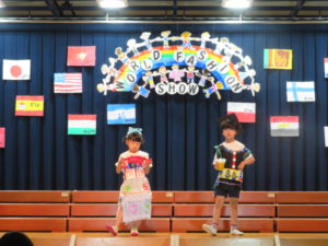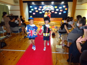 令和5年9月29日(金)午後からホールでさくら組のファッションショーを行いました。4年ぶりに保護者の方にもご参加いただきました。前日は保育園のお友達のお客さんの前で・・・大忙しのさくら組さんでした。ホールにはレッドカーペットがひかれ、その上を二人ずつウォーキングしてポーズ!舞台の上に上がります。今年は世界の民族衣装をテーマに制作を進めてきました。図鑑などで色々な国を調べ、自分の作りたい衣装を決めていきましたよ。仕上がりがとても素晴らしく特徴をよくつかみ感心しました。舞台の上でみんな輝いていましたね☆