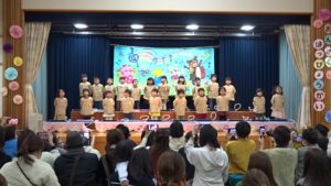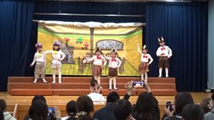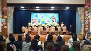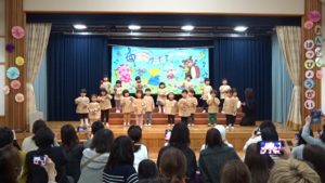 令和6年2月10日(土)に令和5年度・音楽発表会を開催しました。3年ぶりの4年次合同での開催となり、久振りにたくさんの保護者の方の前で発表することができました。もも2・きりんグループは初めての発表でしたが、舞台に上がることをとても喜び、会場のお父さん、お母さんに手を振るかわいい姿が見られました。ばら・ゆり・さくら組のお友達もこの日をとても楽しみに毎日の練習を頑張っていました。発表会が近づくにつれて、「もっとやりた~い!」と気合が入る子ども達でした。どのクラスもとても素敵な発表となり、各年次らしさがあふれていました。違うクラスの発表についても沢山の感想をいただき、ありがとうございました。保護者の方の温かい見守りの中、無事に終えることができました。